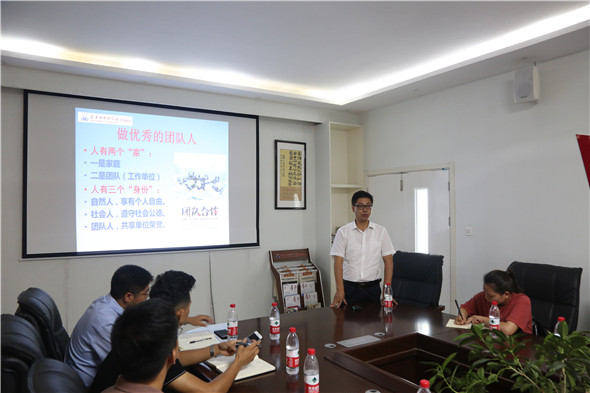 最后,滨河淮外常务校长赵树青以“团队精神”为主题与后勤新成员们共同交流学习。赵校长在讲话中指出,一朵美丽的鲜花,打扮不出美丽的春天,个人只有融入团结的集体才能实现宏伟目标。后勤工作是学校整体工作中重要的组成部分,没有后勤工作人员的辛勤付出和努力工作,学校就不会有良好的办学条件和育人环境。对于新入职的成员们而言,应当具备较强的团队意识,共为团队协作、共维团队荣誉、共创团队文化,不断地强化团队意识才能共攀高峰,打造出和谐而又有战斗力的后勤团队,以新的姿态踏上新征程。新学期,新目标,新航向,我们将以新的力量携手共进!希望新入职的成员们在今后的后勤工作中坚持“学校放心,家长满意”的工作目标,化作春天地泥土更好的呵护学生。