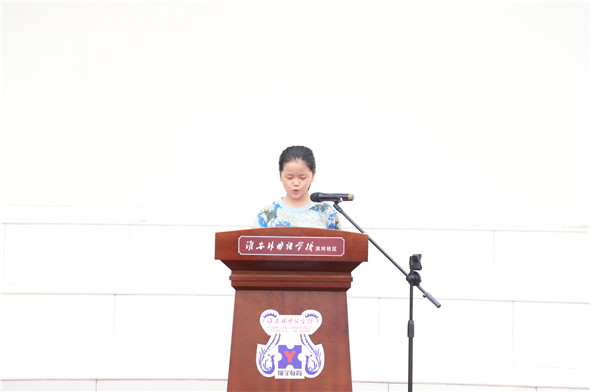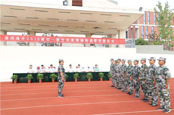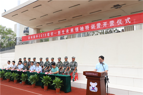 在看完教官们精彩的分列式表演过后,淮安外国语学校滨河校区常务校长赵树青宣布2019级初一未来领袖特训营正式开营!