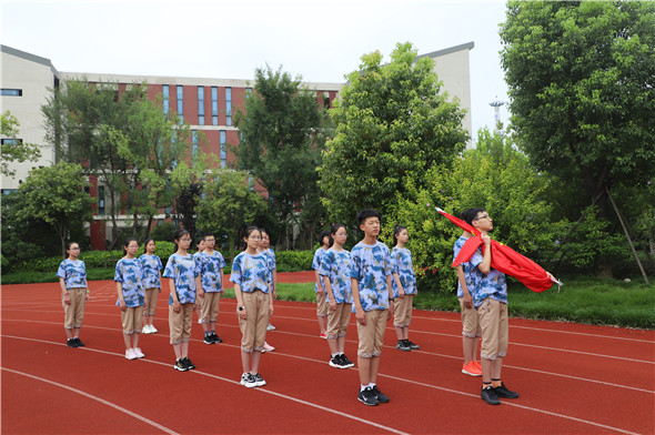 8月26日上午,在初晨阳光照耀下的校园2019级初一未来领袖特训营正式开营。首先,举行了庄严的升旗仪式,在国歌声中,我们看到了营员们的坚定的目光、坚毅的脸庞,相信在这样的诗意校园里,在最美的时光里,他们会成就最好的自己。