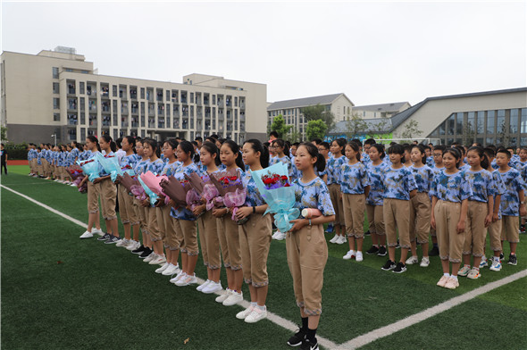 营员们的成长离不开教官的辛劳,同学们用娇艳的鲜花和热烈的掌声表达自己的敬意和谢意。
