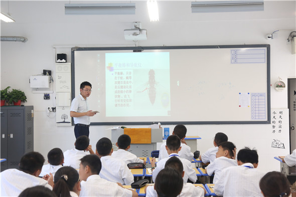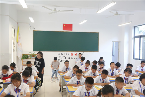 滨河淮外常务校长赵树青、副校长田学银、教育教学处主任英昌磊、德育处主任曹爱国等领导组成听课组,在不提前通知任课教师的前提下,随机选择班级与科目听课,以便更真实地了解教师在常态下的备课、授课情况和学情。