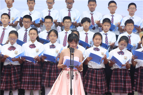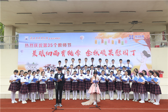 初二级部的同学们献上诗歌朗诵《献给老师的歌》,饱含深情地感念师恩,并代表所有学生向老师们送上最真挚的祝福。