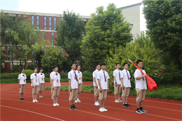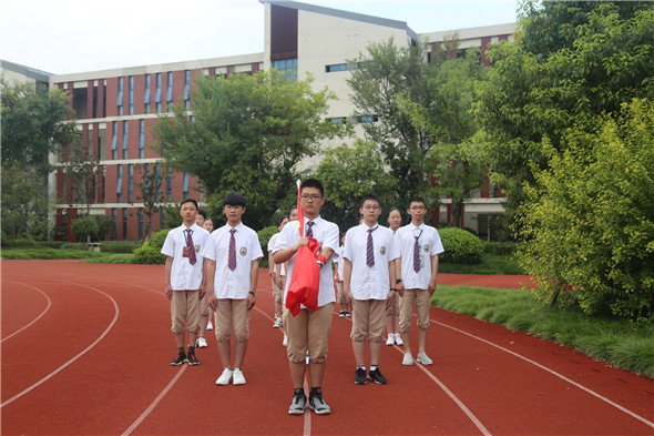 在这个特殊的节日里,初二2班同学负责本次升旗仪式,参加升旗的同学们,英姿勃发,步伐整齐,蓄势待发。随着主持人“升国旗、奏唱国歌”的口令,滨河淮外的所有师生及部分家长肃立面向国旗,高唱国歌,五星红旗冉冉升起。