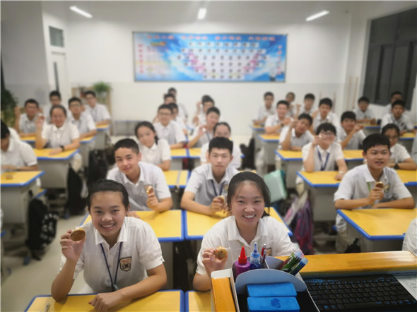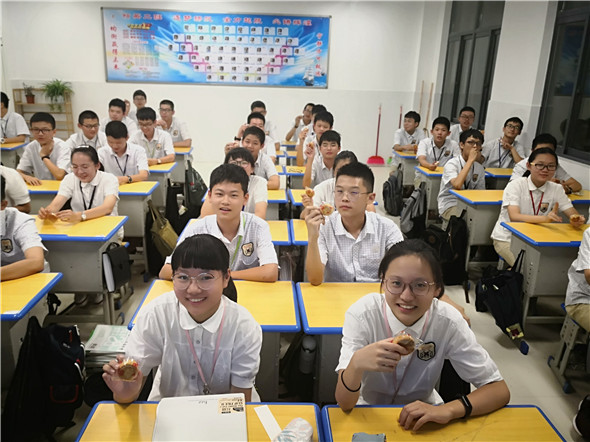 为了让同学们在学校欢度更加甜蜜的中秋佳节,学校特地为每一位同学都准备了美味的月饼。同学们在一片欢笑声中共享美味!