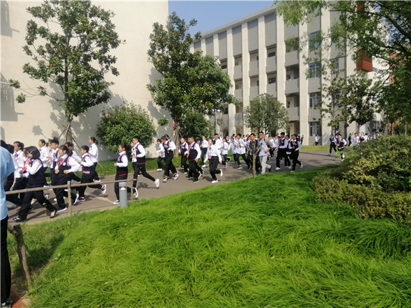 上午9点20分,防空警报响起,各楼层负责撤离的人员立即到位,在老师们的指挥下,同学们快速地从各个教室有序撤离到安全位置。整个过程师生配合默契、行动迅速、紧张有序,没有出现慌乱场面。同学们迅速撤离到操场上,各班及时清点,上报人数。滨河淮外德育处曹爱国主任对此次演练活动进行了总结,肯定演练的组织得力、分流到位、秩序井然、快速安全,仅用了极短的时间,全体同学已具备了一定的紧急逃生能力。