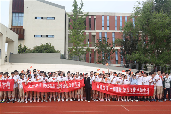 滨河淮外常务校长赵树青、副校长田学银和全体毕业班老师陪伴2020届初三同学完成初中阶段在母校的“最后一跑”。