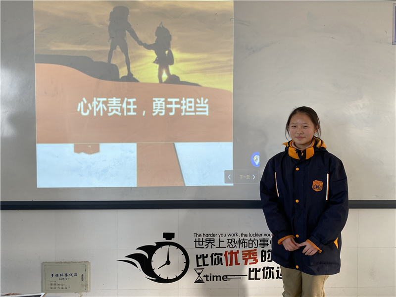 通过此次主题班会 同学们深刻感受了责任的重要性,学会对自己、对他人、对集体负责。责任使于心,践于行;因为责任,所以勇敢;因为责任,所以付出;因为责任,所以成长;因为责任,所以成功。讲责任,讲担当,无需豪言壮语,无需惊天壮举,只需放眼当前,从本职工作做起,从一点一滴做起,将责任时刻铭记于心,将担当处处落实于行,做一个有责任心、勇担当的滨河学子。