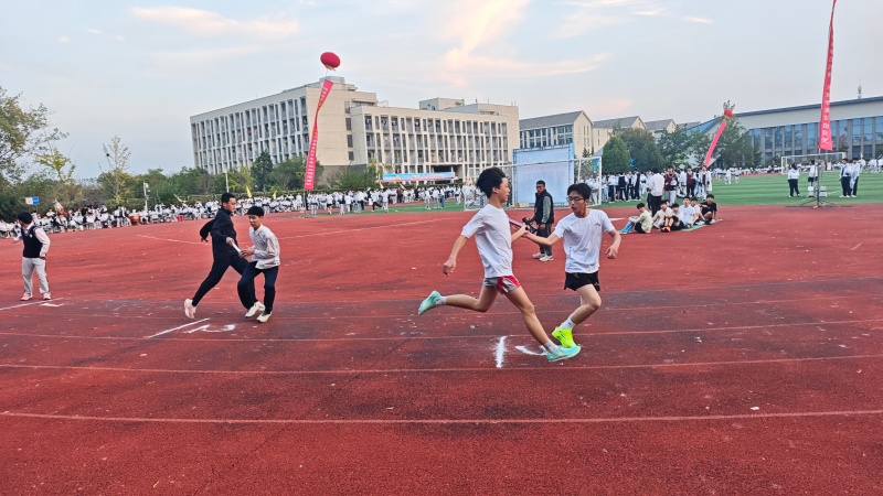 教职工50米往返接力跑,老师们的参赛热情丝毫不输给同学。他们合作接力、奋力拼搏,赛场上的同学们更是情绪高涨、热情似火,呐喊声、加油声响彻整个运动场。教职员工们挥洒热情,展现活力,赛场上充满了正能量。