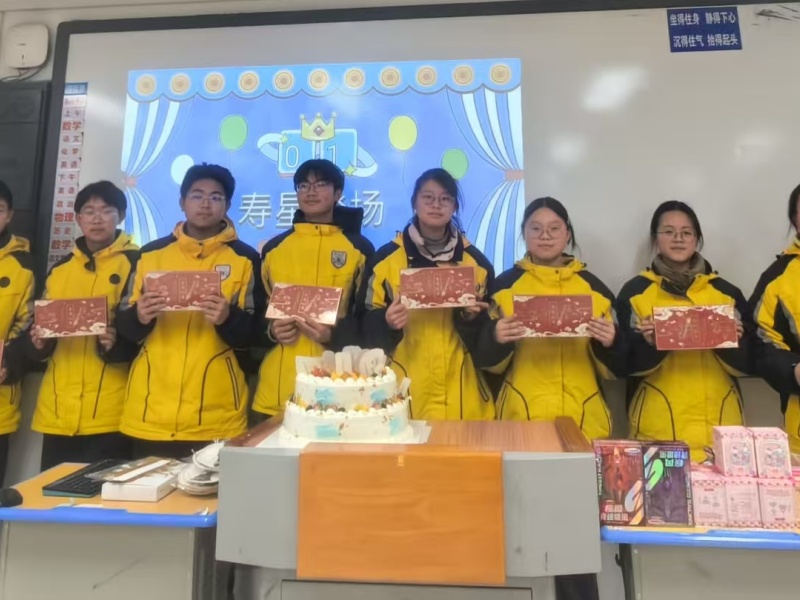 伴随着熟悉的旋律,班主任们推出点燃蜡烛的生日蛋糕走入教室,顷刻点燃全场热情。掌声、欢呼与祝福交织,冬夜因这份心意而格外明亮。