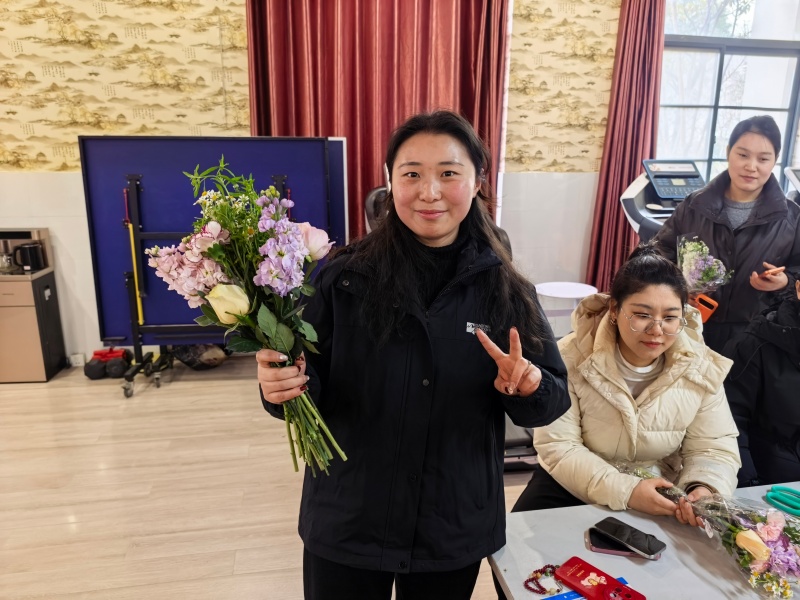 老师们兴致盎然地挑选心仪花材,指尖流转间,原本零散的花枝渐渐变成一件件独具匠心的插花作品。活动以花为媒,既陶冶了情操,更拉近了同事间的距离,让女教职工们在繁忙的工作中收获了惬意与美好。