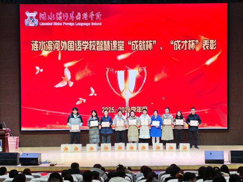 表彰环节,教学处董云主任宣读表彰决定,对上学期“青蓝工程”优秀导师、新秀教师以及“成就杯”“成长杯”智慧课堂优课竞赛优秀教师进行表彰。