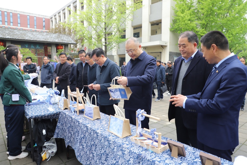 非遗扎染展区古韵盎然。学生现场演示折叠、捆扎、染色、固色全流程,创作的围巾、手帕、装饰画等作品蓝白雅致、创意十足,让美术审美与传统工艺在实践中传承,将美育教学与传统文化传承深度融合,让学生在动手实践中提升审美素养、厚植文化情怀,筑牢文化自信根基。