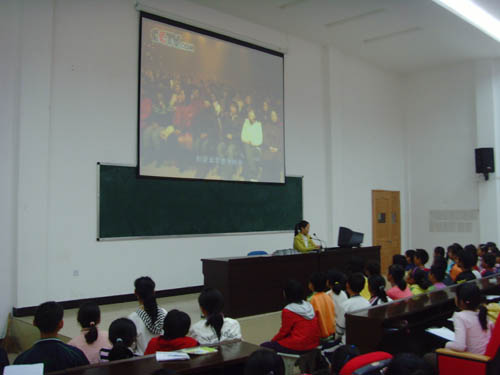 主题讲座上,湛晶老师以《光荣啊,中国共青团》为题,回顾了共青团的辉煌历史,学习了团员的权利和义务,讲解了团徽的内容及意义。她号召大家将团徽庄严地佩戴在胸前,借以鼓励、鞭策自己,在学习生活中做同学们的榜样。随后,湛老师还组织团员一起观看纪录片《2006感动中国人物》。