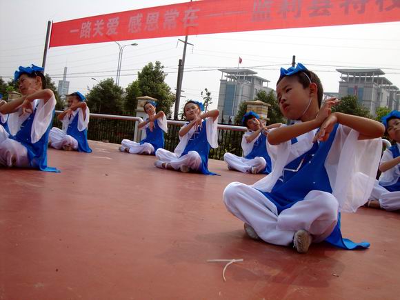 答谢会现场,县特殊学校学生首先诗朗诵《其实我们能行》,残疾孩子用并不流畅的语言表达了他们的自信、自强,表现了他们对生活的热爱和信心。接着,一群孩子们表演了情景剧《慈母手中线》,孩子们尽管身体上存在不便,但他们认真的表演态度、充满纯真的笑脸感染着在场的每一位观众。节目结束后,现场响起阵阵热烈的掌声。