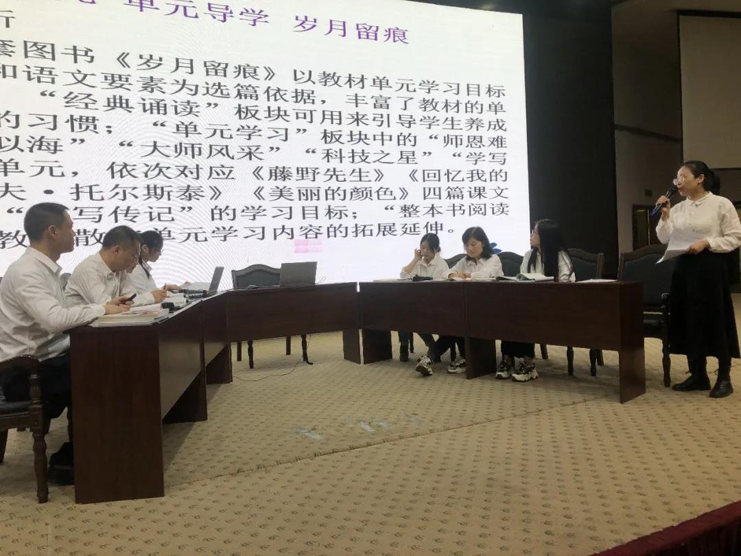 之后,学校周静老师以《从百草园到三味书屋》一课进行了教读引领课展示,用潜心知文意、美读悟童真、思辨悟主题和慧心习类文四个活动,由浅入深,溅起学习的阵阵涟漪,点燃一簇簇思维的火花。抓住默读文章的方法,把握内容,关注句段,感受童真和理解情感。周静老师与学生演绎读美女蛇的故事可谓精彩绝伦,学生一起聚焦读老先生的语言可谓饶有趣味。接着,周忆莲老师以“重拾童年”为主题,整合三篇丛书课文《鱼鳞瓦》、《笔墨童年》和《海边的童年》,设定品读文章,感悟童年情思,重拾自己的童年的学习目标。在把握文章内容的基础上,学生分享自己的童年趣事,周忆莲老师的课堂以学生展示为主,学生发言精彩纷呈,充分展现了组文阅读课的魅力。
