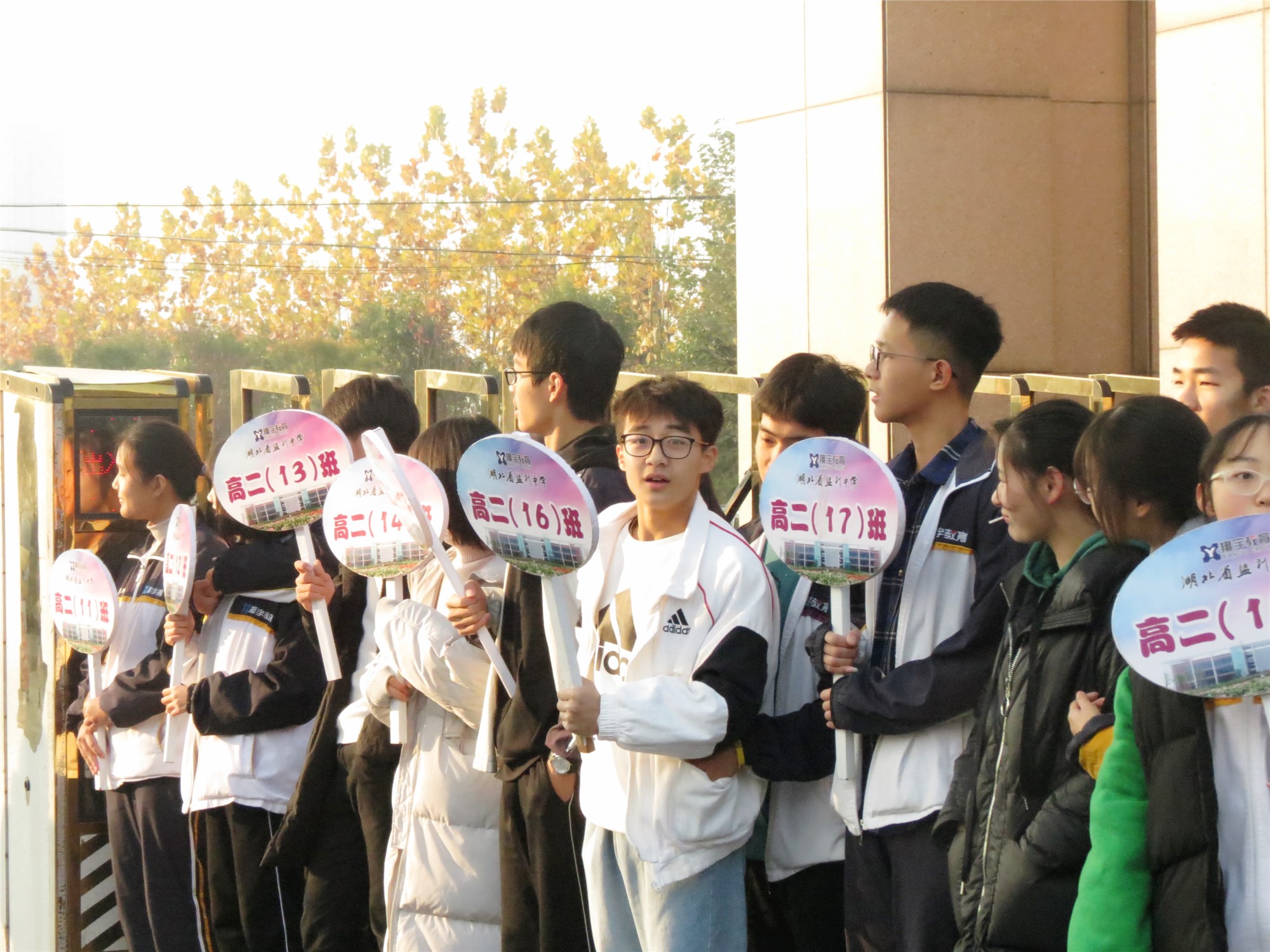 早上7:35分,各班负责迎接工作的学生带着班牌在南门集合,恭侯家长们的到来。
