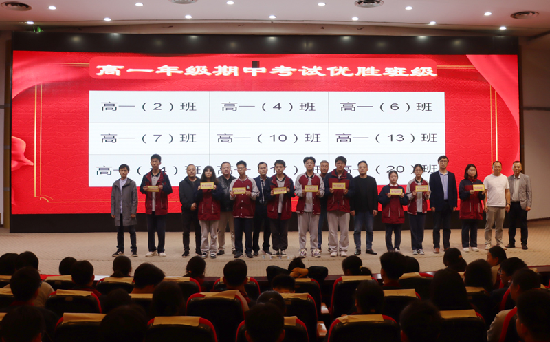 在优秀表彰的激励下,以身边的榜样为学习的动力,在覃校长高屋建瓴的引领下,高一年级全体同学在今后的学习中定会拨云见日,奋勇争先,谱写出无与伦比的青春自传。