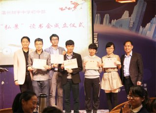 时间:2014-11-27 16:25:13 浏览:18062014年11月26日晚,在装饰一新的温州翔宇中学教师发展中心举行了初中部弘景读书会成立仪式。初中部袁爱国校长出席仪式并作主题发言。 成立仪式上还推选第一任读书会会长谢益鹏老师,以及分管各学科的组织人杨煜老师、朱培飞老师、王聪聪老师和阎靖铮老师担任...
