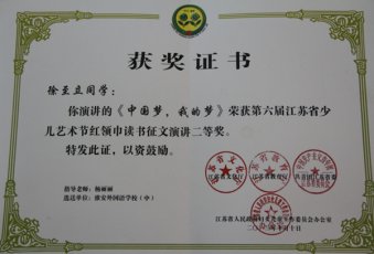 淮外徐至立参加省读书征文演讲比赛喜获二等奖