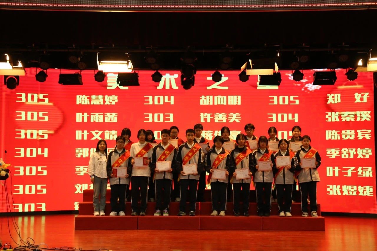 陈哲同学宣读了本次考试十强之星、本科之星、艺术之星、美术之星、美术闪耀之星名单。获奖同学依次上台领奖,校领导及部分班主任为他们颁奖。