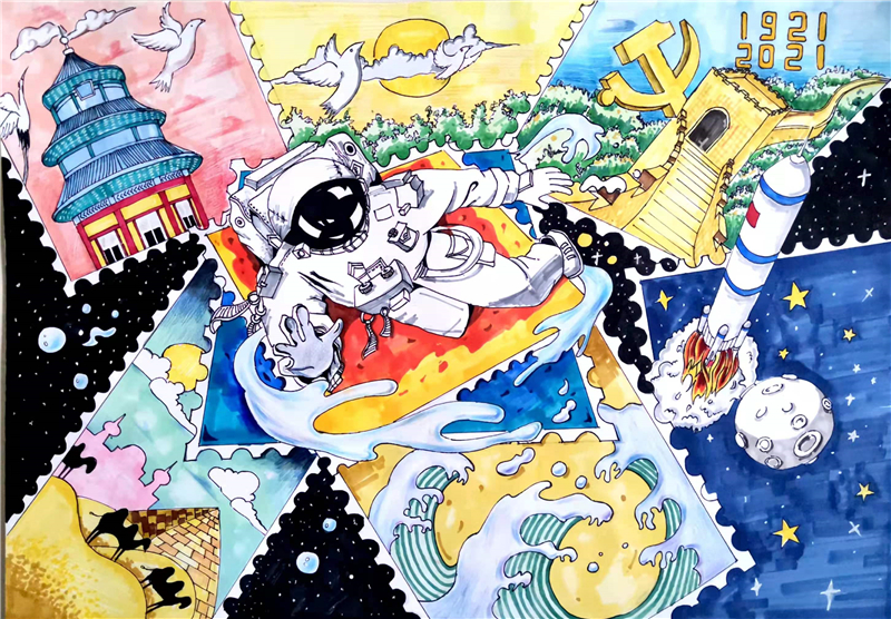 此次活动立足于科技创新,激发了孩子对于未来的思考,把幻想赠画笔,以大胆的心为纸,铺就未来的宏图。色彩在纸上怒放,线条在纸上游走,何谓“科技未来”?这由滨河淮外的学子们共同书写!