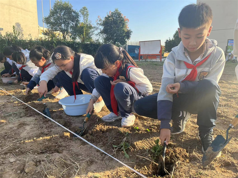还记得去年11月,同学们去种豌豆、蚕豆时的情景吗?三、四年级的同学在老师的指导下,在劳动实践基地里的“四益生长园”给豌豆、蚕豆种子们安下了家。种植园是同学们认识自然的一扇窗。在老师的带领下,同学们带上锄头、水壶、种子和菜苗,正式开始播种。松土、挖坑、种苗、浇水,他们挽起袖子,干劲十足,即便双手满是泥土依旧热情满满。在汗水和欢笑中,滨河娃又一次体验了种植、栽培过程,学习了简单的田间劳动技巧。