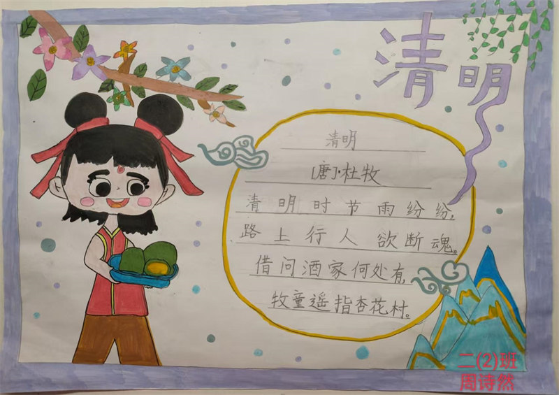 “梨花风起正清明,柳岸寻芳半入城。”滨河淮外小学部二年级开展了清明节诗配画主题活动,以诗画结合的方式寄托哀思,感悟节气之美。