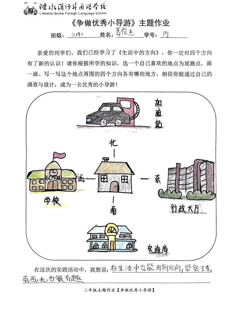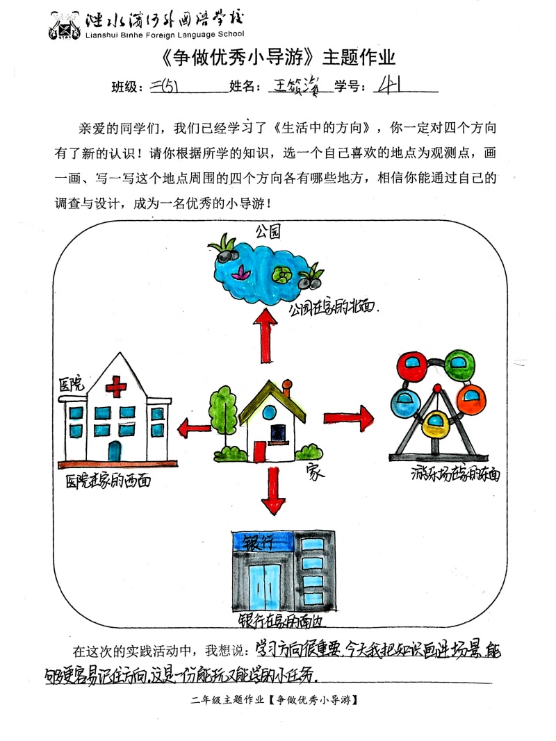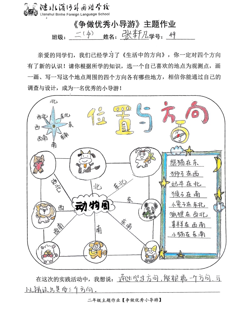 滨河淮外小学部二年级数学组结合上册第三单元《生活中的方向》的学习内容,精心设计了一场“争做优秀小导游”特色实践活动。