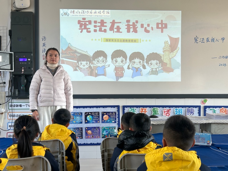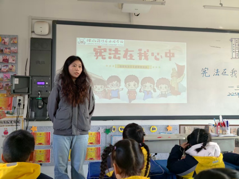 12ÔÂ5ÈÕ£¬Á°Ë®±õºÓÍâ¹úÓïѧУСѧ²¿¿ªÕ¹ÁËÒÔ¡°ÏÜ·¨ÔÚÎÒÐÄÖС±ÎªÖ÷ÌâµÄ°à»á¿Î£¬ÔöǿСѧÉúµÄÏÜ·¨Òâʶ£¬Òýµ¼Ñ§ÉúÊ÷Á¢·¨ÖιÛÄî¡£