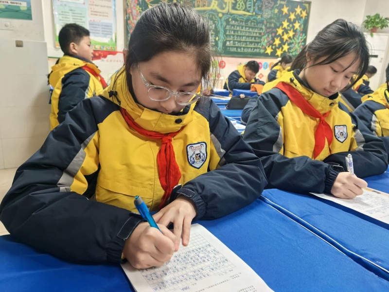 班会尾声,“时光信箱”温情开启。同学们执笔写下对亲友的真挚祝愿,一字一句满含暖意,将新年的美好期许封存其中。