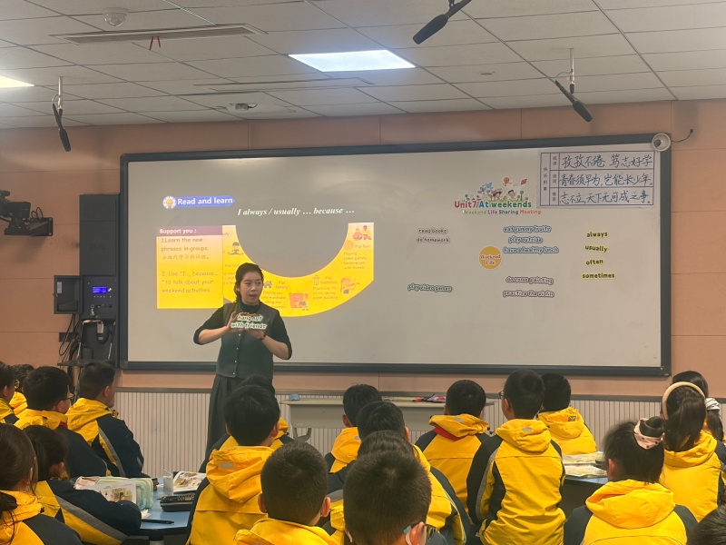 五年级的同学们精神饱满、积极投入:面对老师的提问,他们自信举手、用流利的英语表达见解;小组讨论环节,大家围坐在一起,认真倾听、踊跃补充,稚嫩的声音里满是对阅读的热爱。整节课既夯实了学生的阅读基础,又激发了他们对英语报刊阅读的兴趣,充分展现了滨河学子良好的英语素养与课堂风貌。