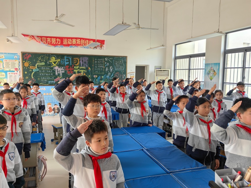 本次升旗仪式由四(4)中队承办,姚怡彤、陶可瑆同学担任主持人。四(4)中队是团结向上、温馨和谐的大家庭,队员们勤学奋进、爱护环境,以实际行动为校园添光彩。伴随着雄壮的《义勇军进行曲》,全体师生肃立注目、齐唱国歌,庄严的仪式感浸润心田。