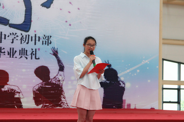 初三(12)班赵耀同学的妈妈作为家长代表发言,“看到孩子们在翔宇三年,幸福成长我们很欣慰,祝福你们未来更加美好!”毕业典礼上,初三(6)班的朱婉萱、吴萱怡,初三(12)班的朱可夫、郑冰茜同学先后为大家带来精彩的表演,同学们也全体合唱《毕业歌》用自己的方式表达对大家的祝福。