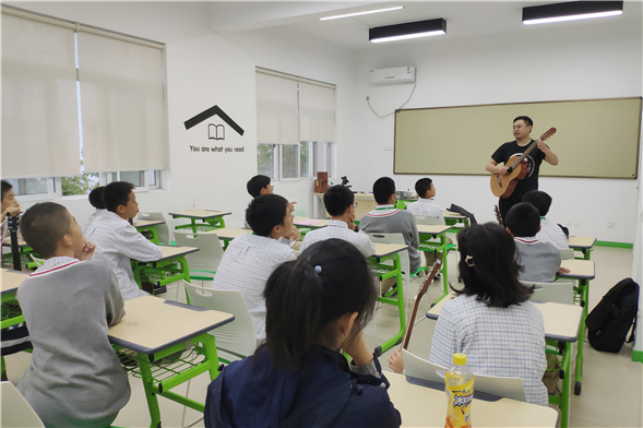 “你了解古典吉他和民谣吉他的区别吗?”2018年10月25日,温州翔宇中学初中部古典吉他乐团开课,市古典吉他协会秘书长薛文麟老师亲自授课,20名吉他爱好者现场参与学习,大家带着对音乐的热情和对校园生活美好的憧憬全新启程。