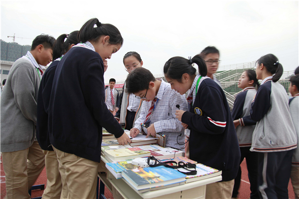悠悠书香,点点墨趣,与书为友,天长地久。2018年10月31日,温州翔宇中学初中部读书节之书市淘宝活动在学校灵晖运动场欢乐启动,孩子们以班级为单位摆摊设点,有的用手绘的海报吸引顾客,有的用精彩的表演吸引顾客,很快大多数同学就淘到了自己心爱的书籍。