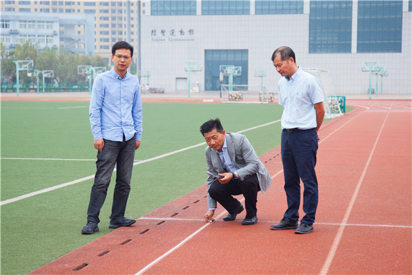 田径运动场是本次比赛的核心用地,学校总务处严格按照组委会要求完善学校田径场的“外场”“中场”和“内场”设施,并于10月26日,邀请到了永嘉中学体育组组长戴勇到学校,现场指导中场径赛跑道的画线工作,确定跑到宽度、直段长和弯道长的比例等符合大赛要求。内场用于跳高、撑杆跳高、跳远、三级跳远的助跑道和落地区也都做好了划分和改善工作。分会场永嘉学院也已就“铁饼”“标枪”项目场地按要求做好了布置。同时,学校团委书记薛飞介绍,运动会期间还将有师生志愿者全程为大赛服务,保证赛事的顺利进行。