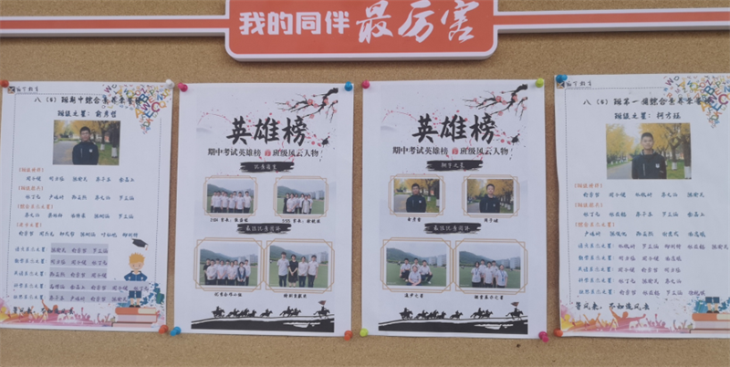 2022年4月22日,温州翔宇中学初中部八年级开展了班级“软木墙”文化评比活动。各班级分别派出2名学生代表,共计40名学生组成评审组进行评比。“12班‘我的个性我张扬’版面布局饱满,内容详实,画面和谐有意境。”“19班版面设计紧紧围绕期中考试表彰为主题,正能量足。”“1班的文化建设中,用科任教师朋友圈点赞学科状元的创意,定会让学生爱上这个学科、这位老师,从而更加努力学习。”……学生评委逐一参观后,根据美感设计、内容展示等方面逐一打分,同时也写下了自己的参观感悟。