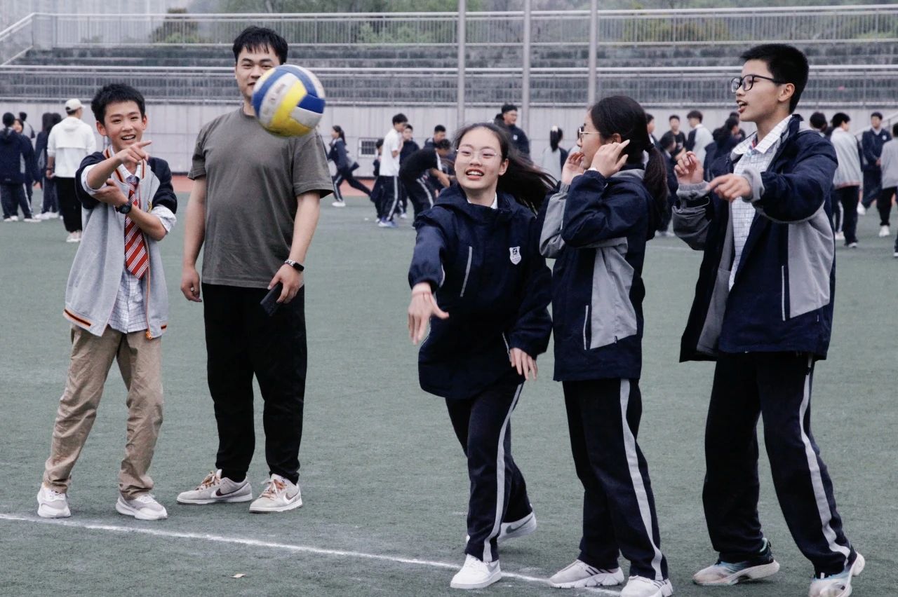紧接着进行的“趣味排球”活动更是将现场气氛推向高潮。活动分为两个班级,一个在圈内,一个在圈上,分别扮演攻击方和躲避方。攻击方的学生们手持排球,巧妙地寻找着躲避方的破绽;而躲避方则灵活移动,努力避开飞来的排球。场上学生们身手敏捷,反应迅速,展现出了高超的竞技水平。观众们也为之欢呼喝彩,现场气氛热烈而紧张。