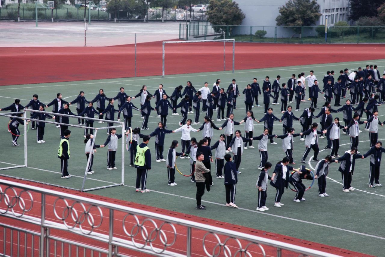 在“一串到底”活动中,学生们热情高涨,积极参与。各班学生手牵手排成一列,传递着手中的呼啦圈。他们配合默契,动作迅速,展现出七年级学生们团结一致的精神风貌。活动中,学生们不仅锻炼了身体,更在欢乐的氛围中加深了彼此之间的友谊。