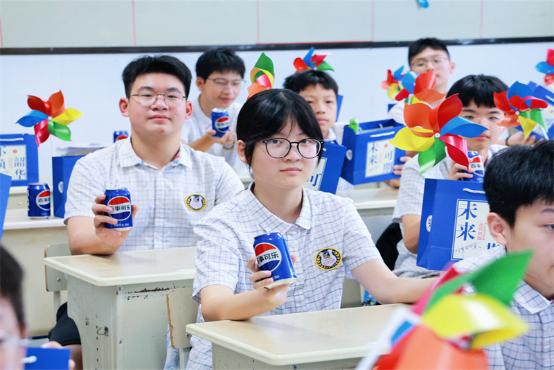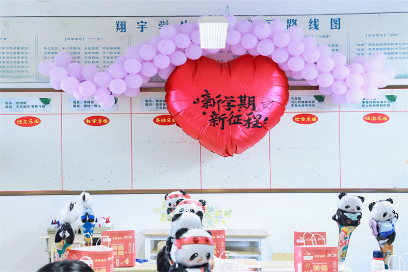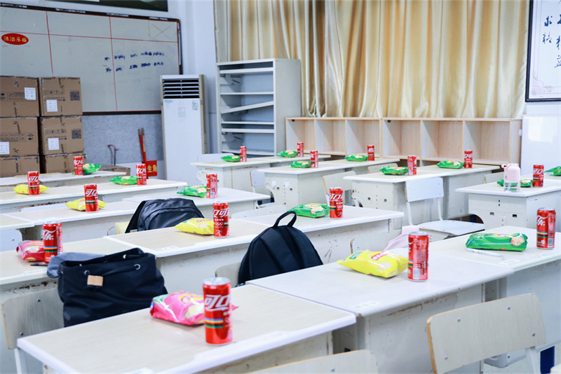 教室外,精心布置的装饰仿佛在诉说着对他们归来的欢迎;课桌上,摆放着的不仅仅是物品,更是对孩子们开学的深深祝福以及对新学期的满满期望。那写着 “心想事成” 的卡片,寄托着对他们未来顺遂的期盼;一瓶瓶 “百事可乐”,寓意着他们的校园生活充满欢乐与活力;“前程似锦” 的标语,激励着他们在新的学期里努力拼搏,为自己的梦想而奋斗。