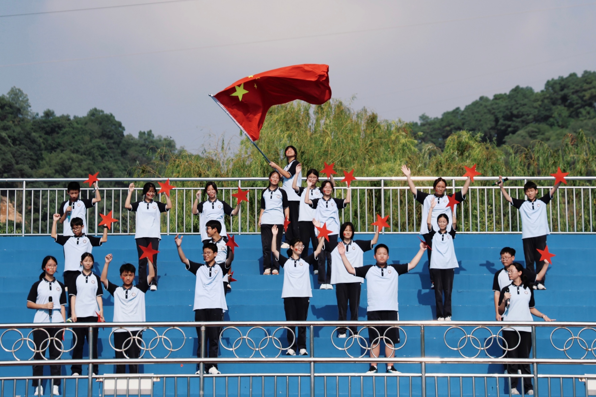 随着音乐声,升旗仪式正式开始。全体师生肃立,注视着五星红旗,伴随着雄壮的国歌声,每个人的心中都涌动着对祖国的热爱和对未来的憧憬。