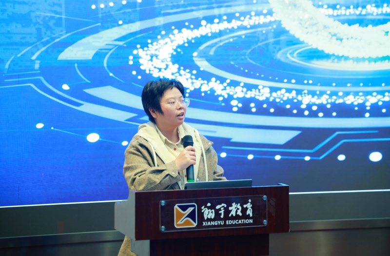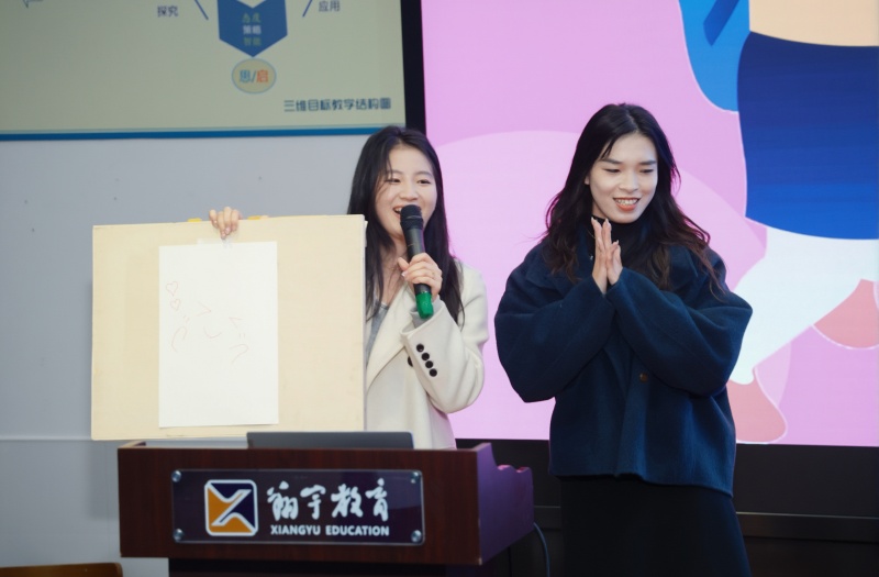 美术老师许陈悦率先分享“艺术鉴赏融入教学”的实用技巧,现场演示如何通过简单笔画勾勒鼓励学生的表情符号,为日常作业批注增添情感温度。随后,社会组陈依婷与数学组江朋老师以创意形式呈现“时政速递”,推出ai数字人翔哥、宇妹,展现教师团队的创新活力。