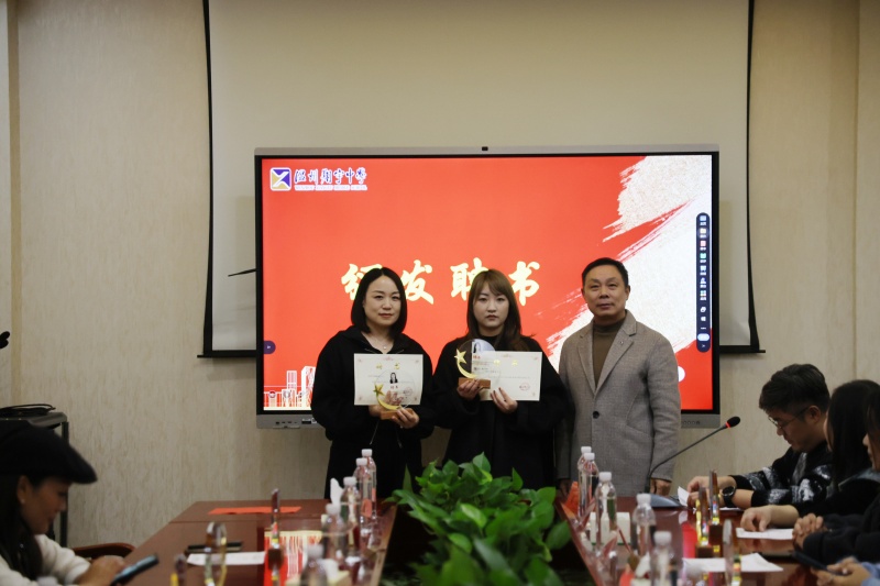 会议首先进行了家委聘任仪式。初中部德育处主任薛飞宣读了聘任决定,刘月娥副校长、袁作林副校长、汤晓芬书记等校领导依次为各位家委颁发聘书。一份份鲜红的聘书,承载着学校的信任与家委的责任,标志着家校合作桥梁的正式搭建。