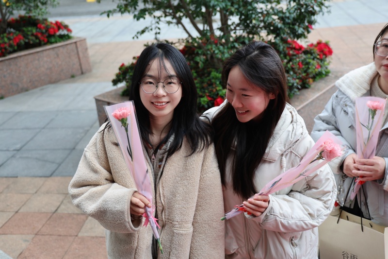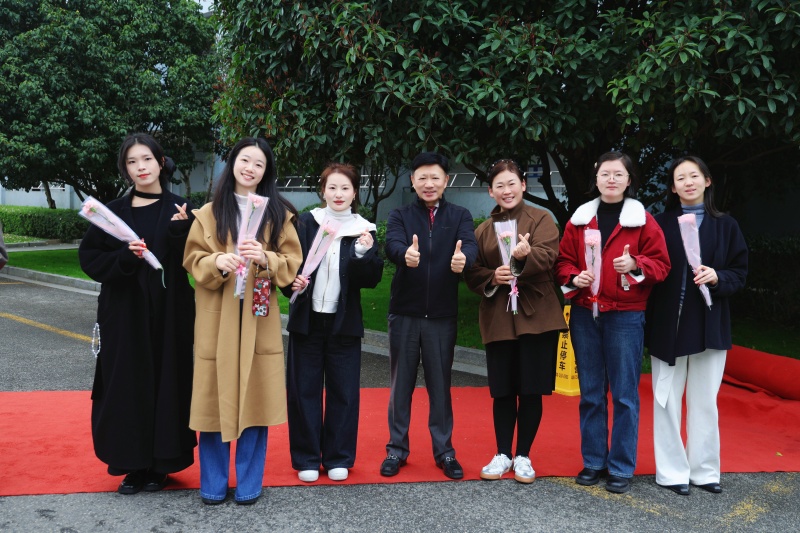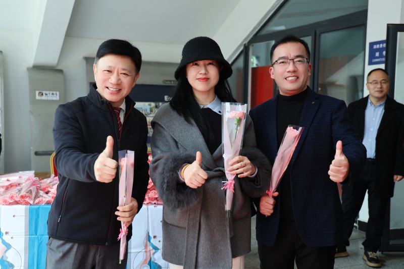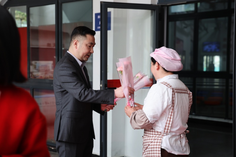 集团和学校领导高立顺、朱加丰、湛晶、董静、高谋、栾鸾等以及各学部行政领导早早守候在这里,手捧鲜花,为每一位女教职工送上节日的祝福。