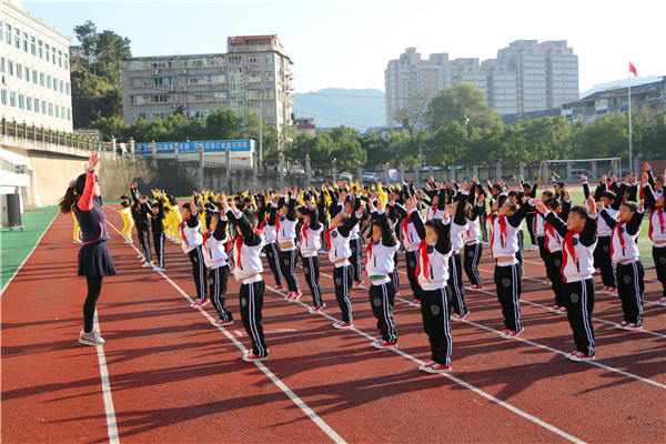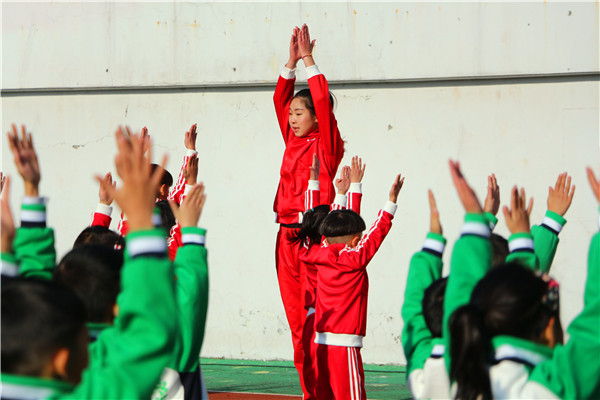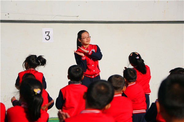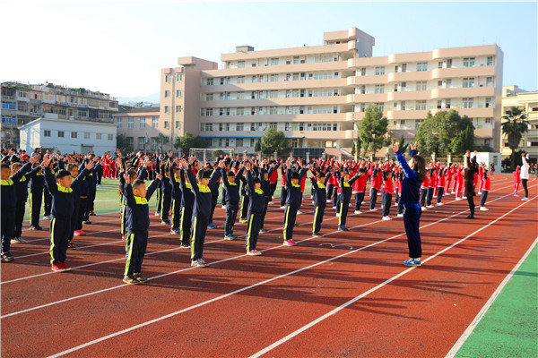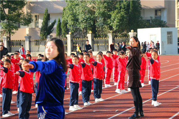 众所周知,第三套广播操旋律优美,动作活泼,时代气息浓郁,但其动作变化多,节奏快,给学生尤其是低年级小朋友的学习带来了一定难度。为此,学校专门召开会议,积极采取办法,制定方案,调动全体教师参与训练指导。各班班主任还亲自示范、领操,用自己的行为诠释翔宇精神,成为独一无二的靓丽的风景线,这在永嘉乃至全温州都是绝无仅有的。