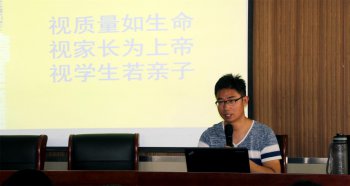 8月29日上午9:00整,温州翔宇小学暑期培训正式拉开帷幕。今天的培训由学部陈涛校长主持,培训伊始,陈校长先邀请今年新加盟翔宇小学的老师作自我介绍。新老师们幽默风趣的话语,让会场不时传出阵阵欢声笑语。
