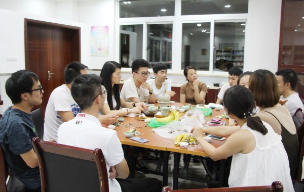 9月21日晚,永嘉翔宇小学童书馆的书桌上,一套青瓷茶具,几样新鲜水果,一群爱读书的年轻人,开启了新学期的第一次读书会活动。本次活动主题是交流共读书目——陈忠实的《白鹿原》,老师们从小说的时代背景,人物性格,描写手法等不同的角度对作品进行了个性化的解读,其间,有争议,有辩解,有笑声,也有思考,气氛欢乐而热烈。