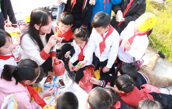 下午13:25全体三年级师生准时在内操场集合,整队出发。同学们个个热情高涨,兴致勃勃,带着昂扬的斗志整装待发。从乌岩山下到山上,整个爬山过程中充满了温馨、愉快,大家相互帮助,相互鼓励,还唱着歌儿,共同完成了爬山活动。到了山顶,各班开展了各种小游戏和活动。有的跳绳,有的玩丢手绢,科学老师陈光相老师带着几个好奇的孩子在山上发现植物,了解植物。体育胡兵老师带着一只小鹦鹉引起全体同学的好奇心,孩子们七嘴八舌地提问。