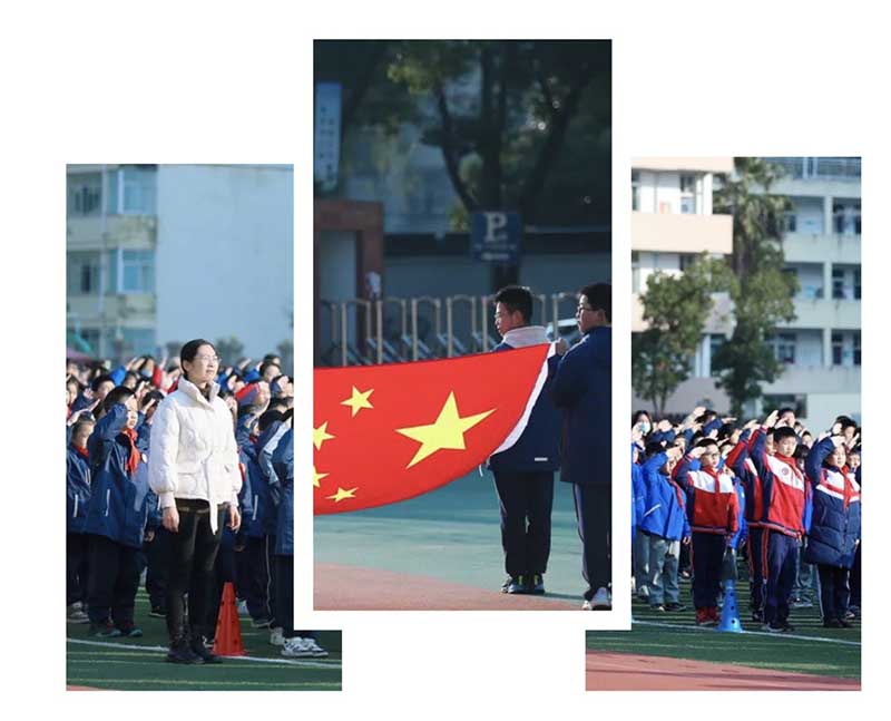 伴随着雄壮激昂的国歌,护旗手踏着铿锵有力的步伐出旗。在全体师生及家长的庄严注目中,鲜艳的五星红旗承载着我们对新学期的希望冉冉升起,随风飘扬。