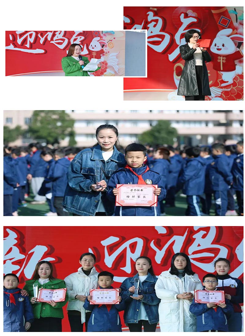 汤小芬书记宣读榜样家长名单,滕颖亮妈妈作为获奖代表发言,班主任和孩子为榜样家长颁发荣誉证书和奖杯。